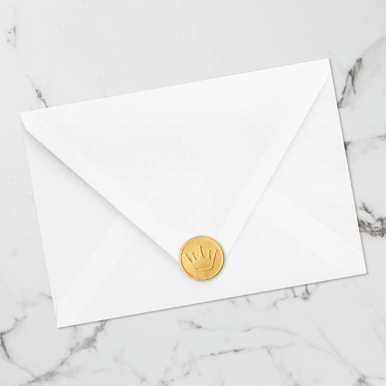 - Includes one card and one lined envelope with a Gold Crown seal. Envelope color may vary.